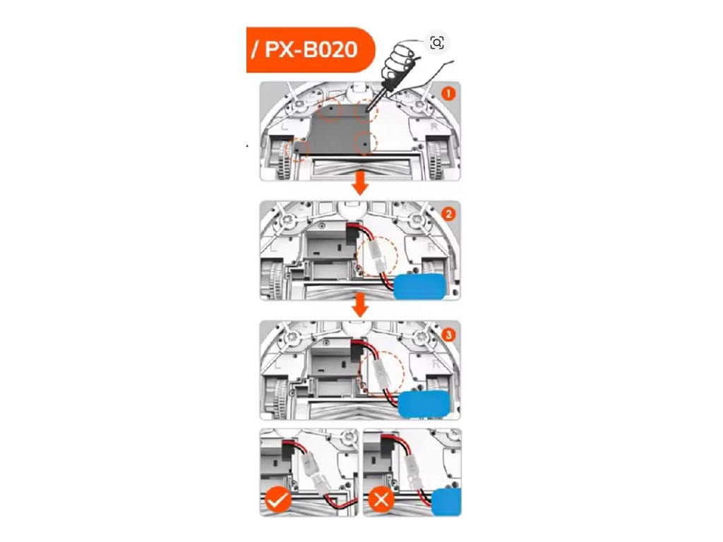- Snadná montáž – stačí odpojit starý akumulátor a zapojit nový do konektoru vysavače.