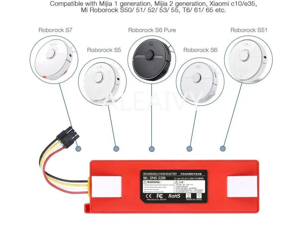 Li-Ion baterie ML-2P4S-5200, 14,4 V, 5200 mAh – kompatibilní s Xiaomi Roborock S50 / S51 / S55