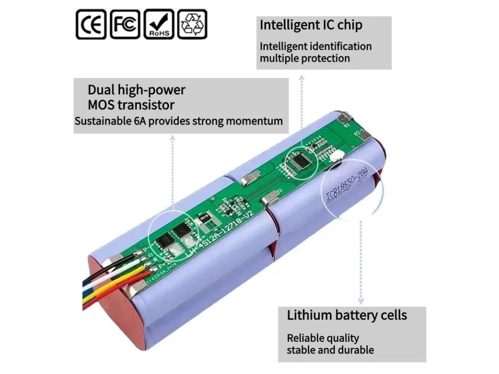 - ✔ Integrovaný BMS – ochrana proti přebití, přehřátí a zkratu