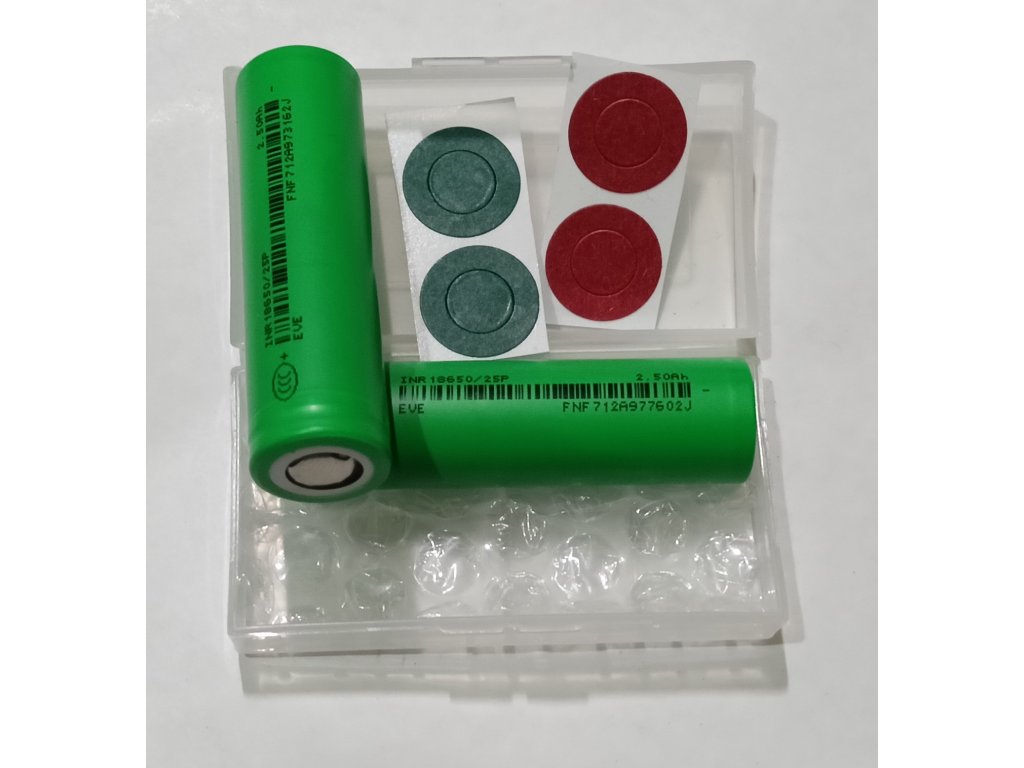 BLISTR 2 články Li-ion EVE INR18650/25P + 4x gasket / fishpaper IZOLAČNÍ KROUŽEK