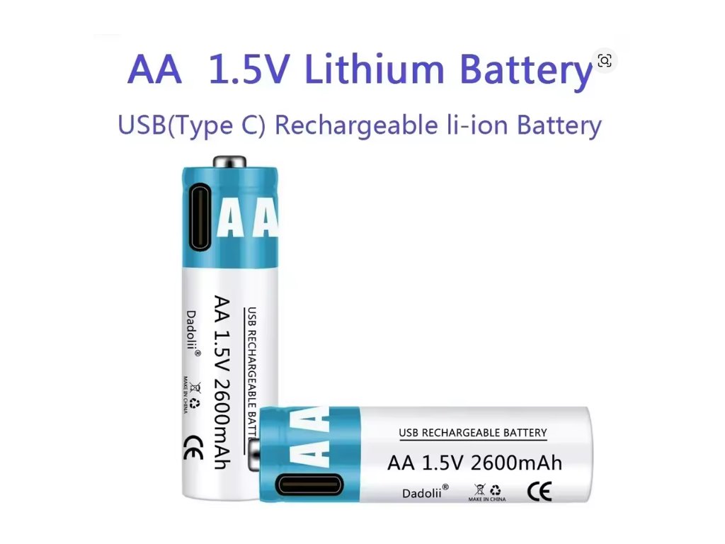AA Li-Ion nabíjecí baterie 1,5 V – 2600 mAh (USB-C)